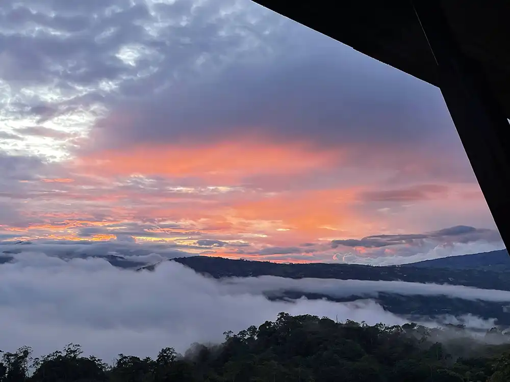This hike begins at the iconic Río Pejibaye footbridge. Follow the river to the small town of Atirro, then cross through coffee and sugarcane fields as you ascend to a viewpoint overlooking Lake Angostura. The trail then climbs challenging terrain to Silencio, where your accommodation offers stunning views.